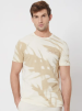 Men Self Design Crew Neck Pure Cotton Beige T-Shirt